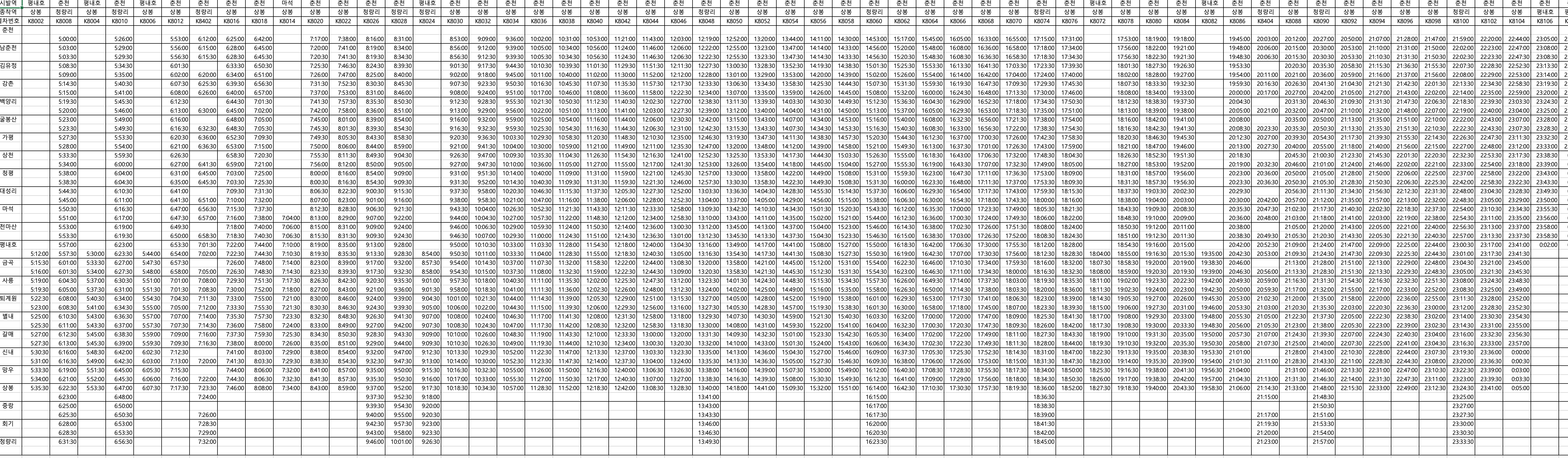 <경춘선 전체 시간표>