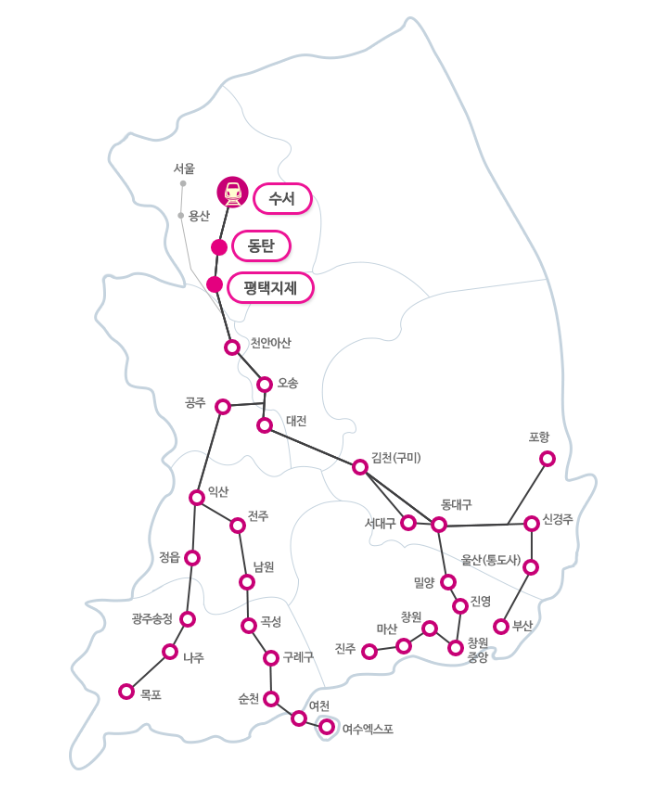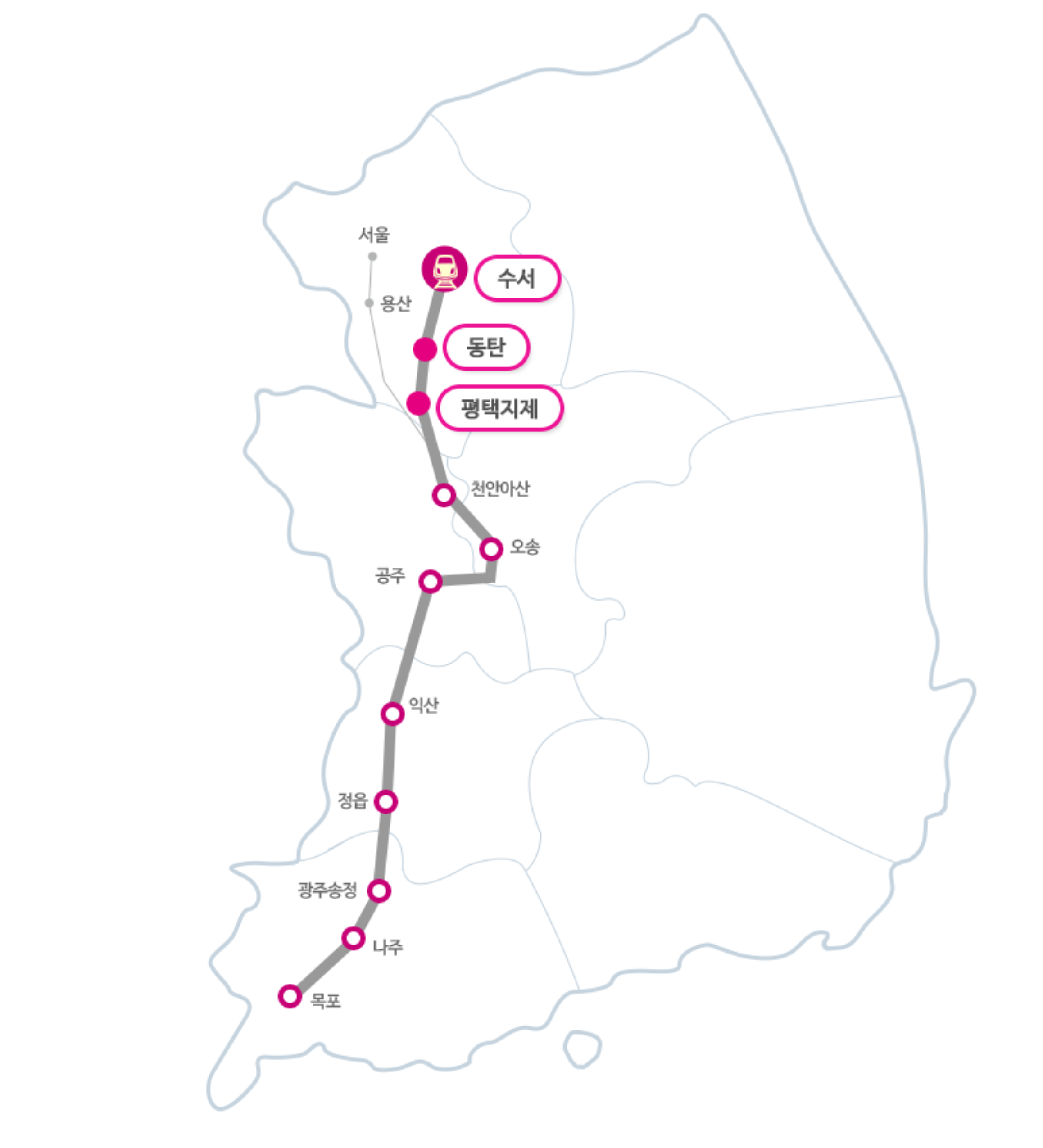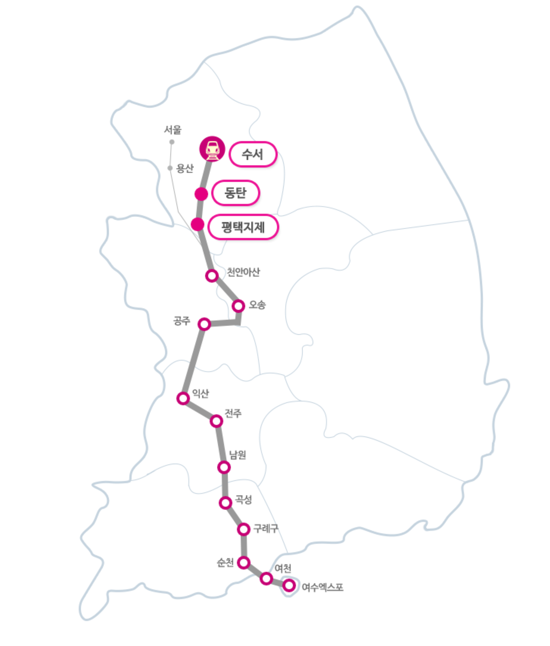 수서역 - 동탄역 - 평택지제역 - 천안아산역