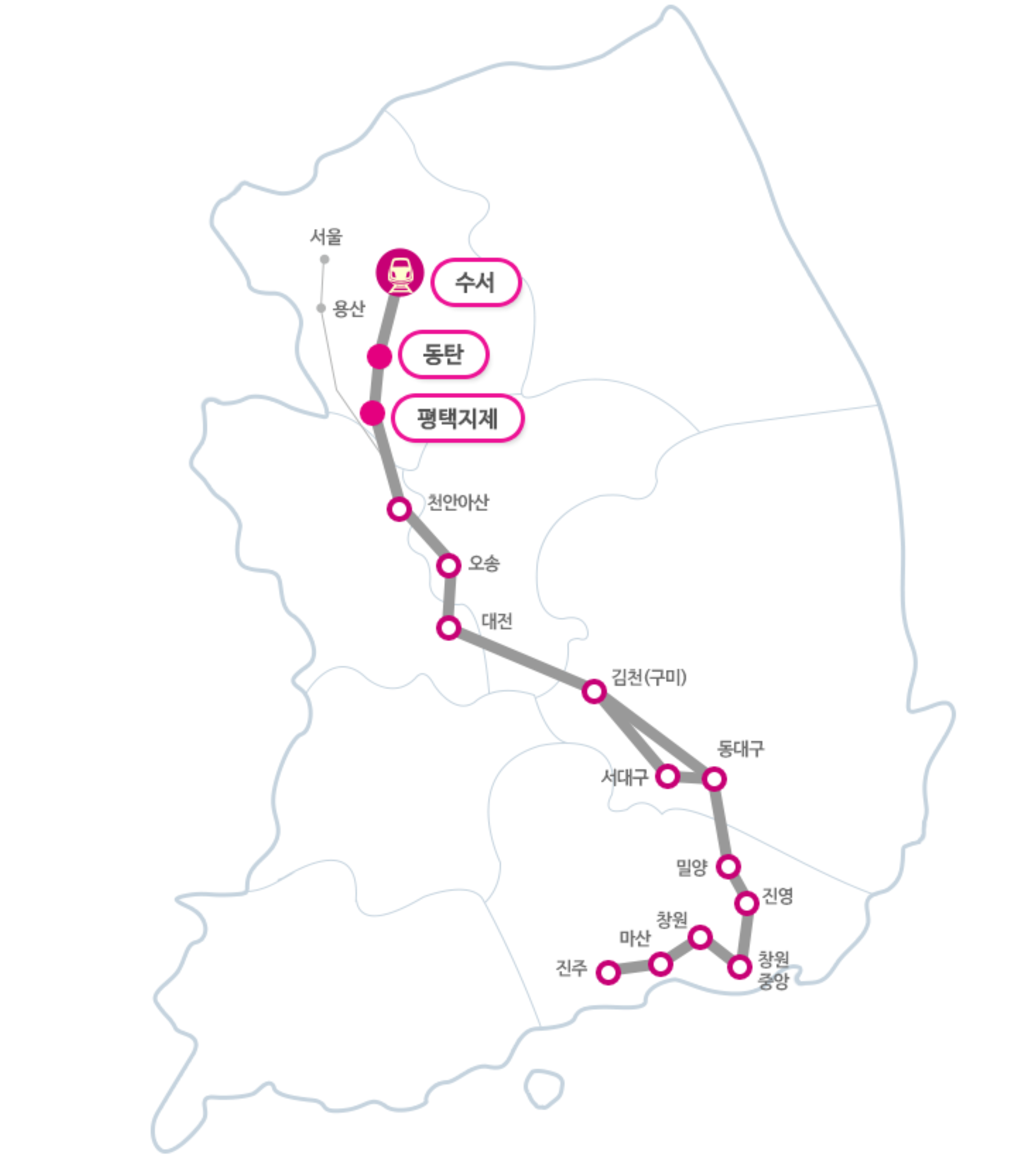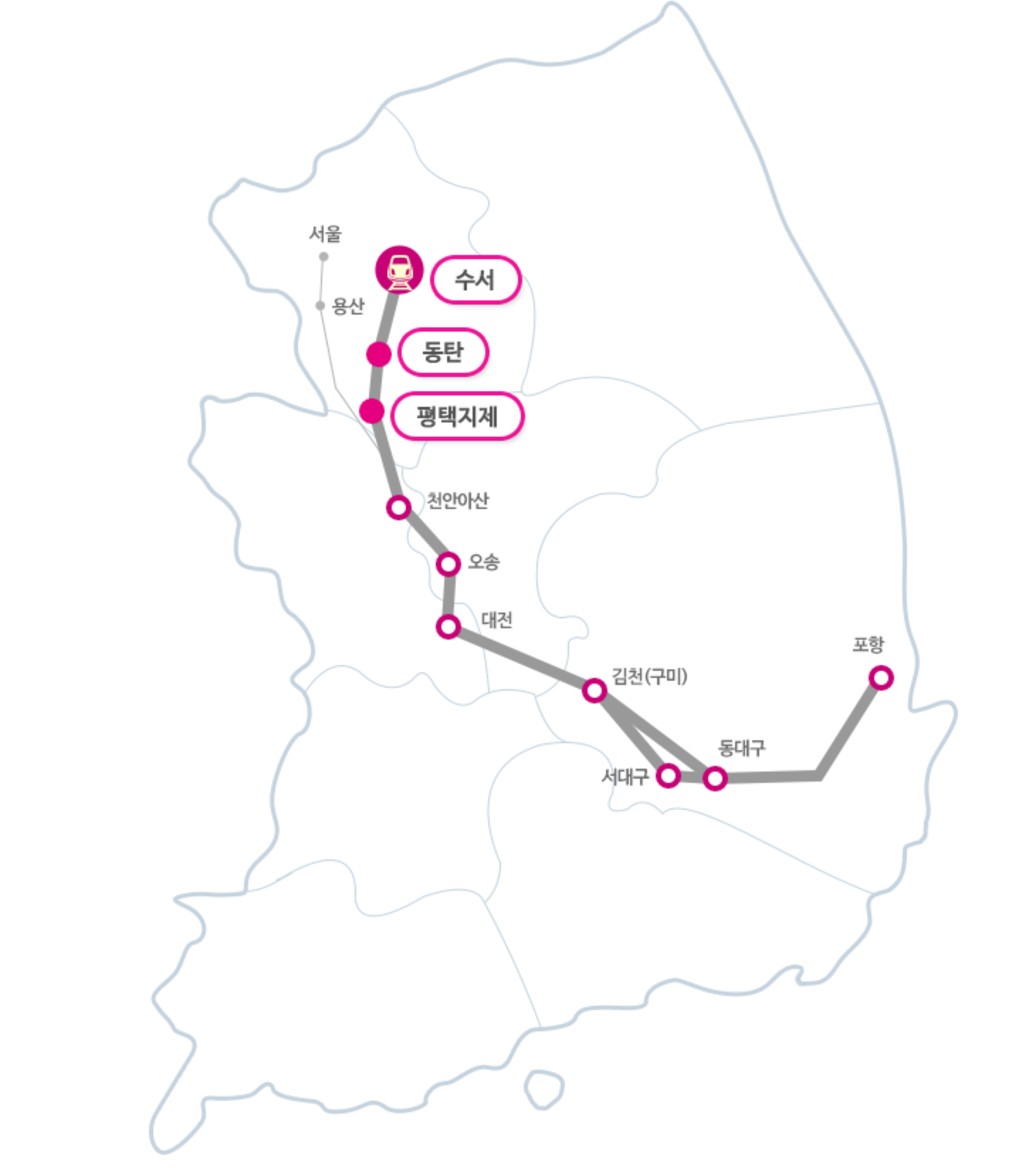 오송역 - 대전역 - 김천(구미) 역 - 서대구역