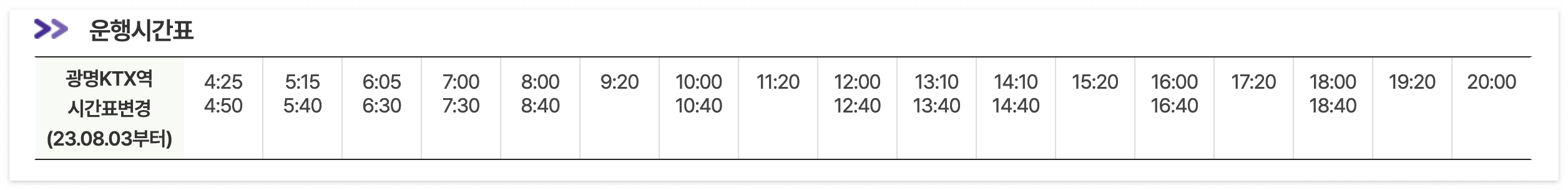 23년 8월 23일 이후에 시간표가 변경된 것을 반영하여 최신시간표를 알려드리겠습니다.